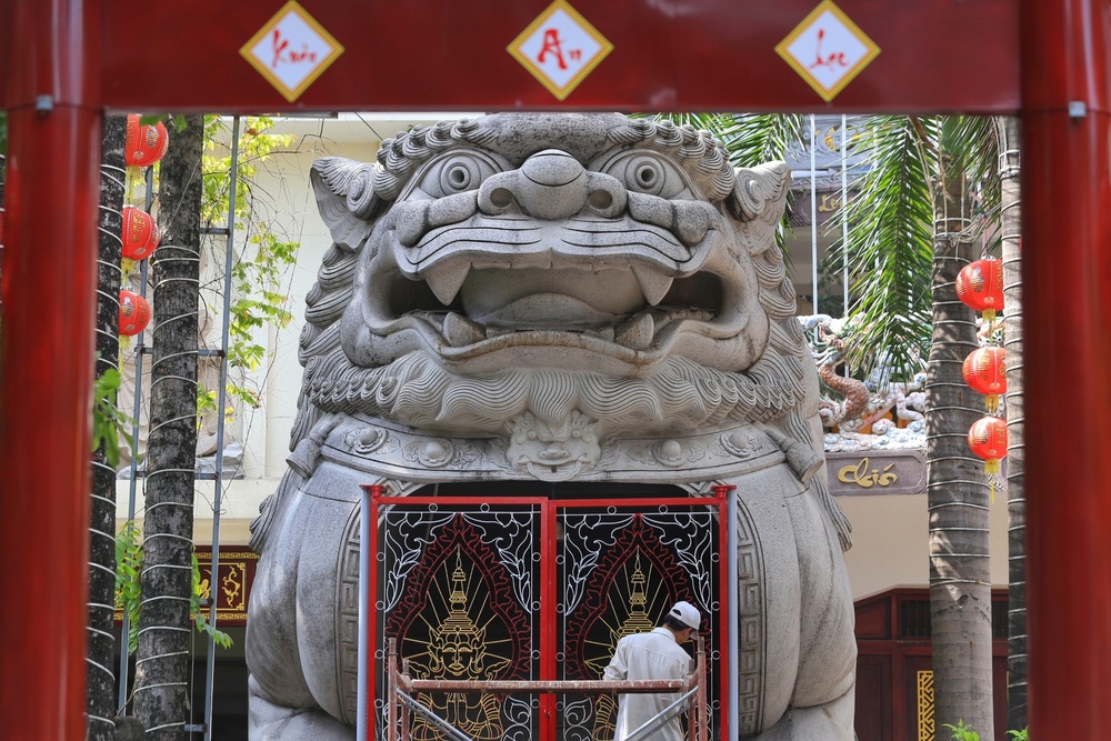 Ngày 25.7.2015, tổ chức Kỷ lục Việt Nam đã xác lập đây là cặp kỳ lân bằng đá hoa cương lớn nhất với chiều dài 10m, rộng 4,2m và cao 5m được thực hiện bởi 15 thợ điêu khắc trong suốt 3 năm (2010-2013). Ảnh: NHẬT THỊNH.