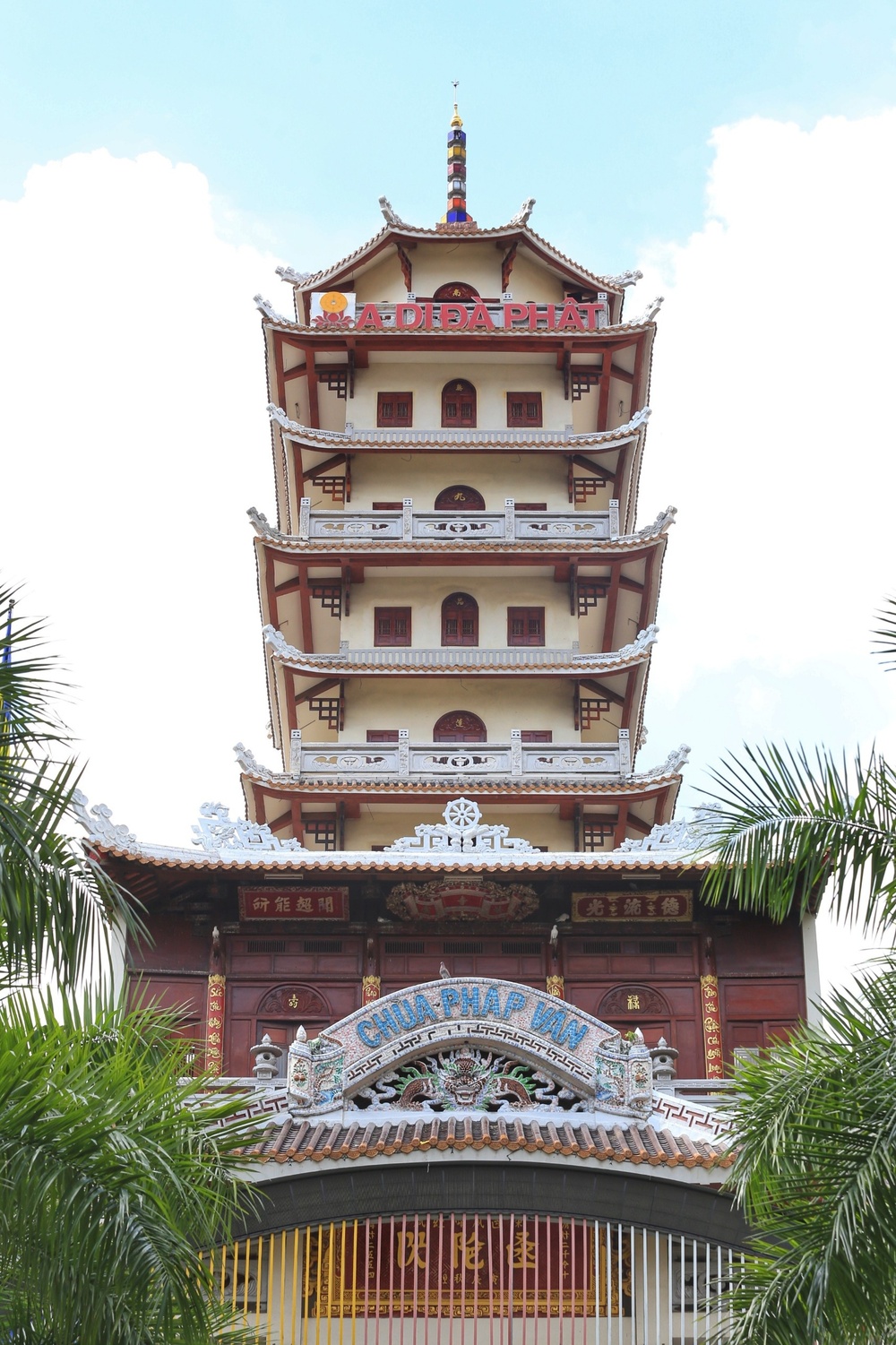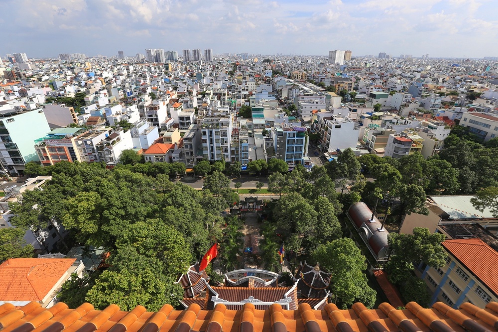 Đến chùa Pháp Vân, du khách vãn cảnh chùa sẽ được ngắm toàn cảnh toàn quận Tân Phú từ tháp cao 14 tầng (64m). Ảnh: NHẬT THỊNH.