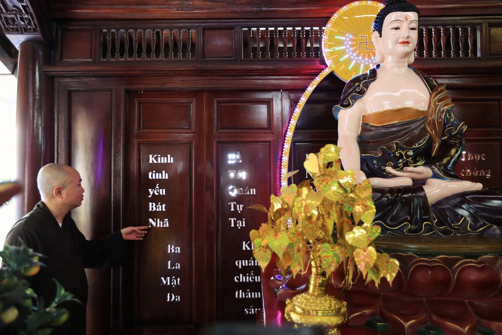 Cũng trong năm 2017, Kỷ lục Việt Nam được xác lập tại chùa Pháp Vân với Kinh Bát nhã bằng tiếng Việt (bản dịch của Thiền sư Thích Nhất Hạnh) được khắc lộng vào bộ cửa bằng gỗ sao lớn nhất. Ảnh: NHẬT THỊNH.