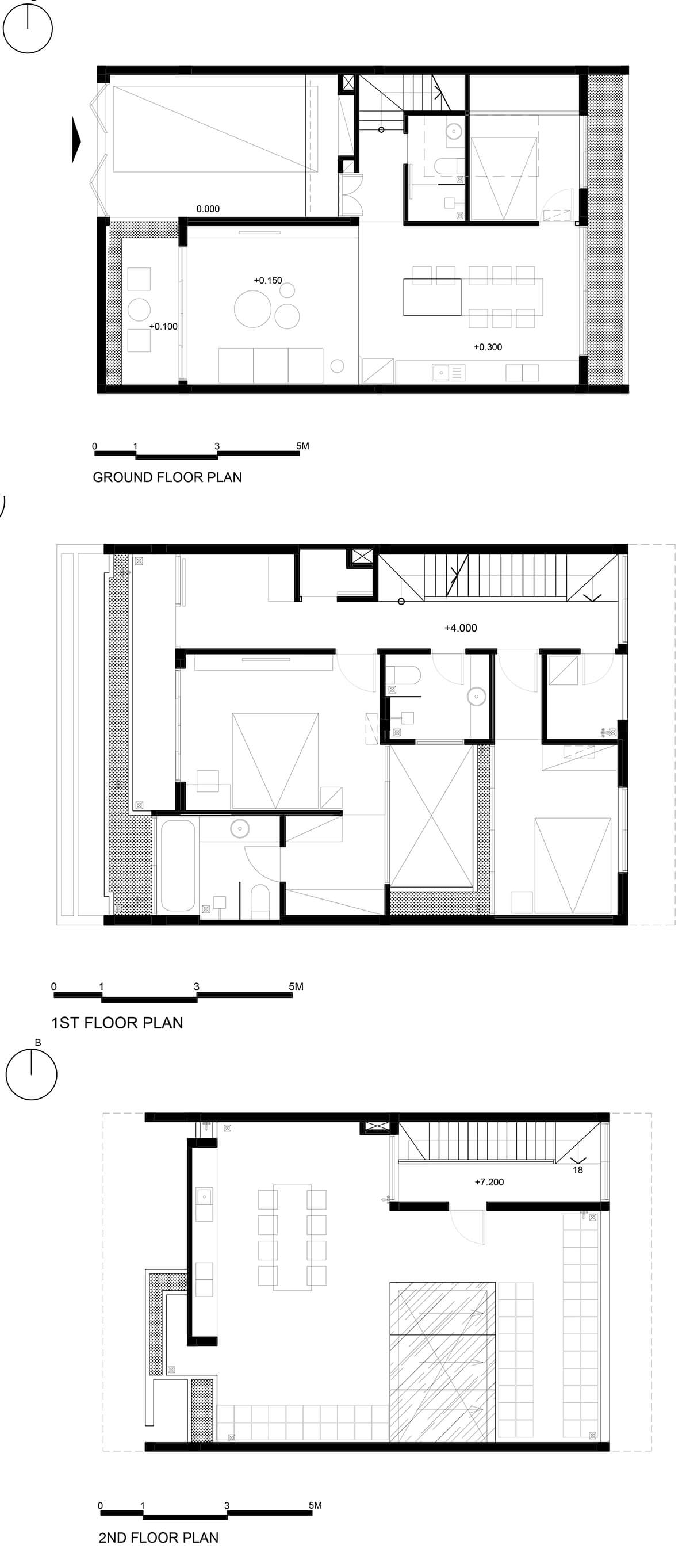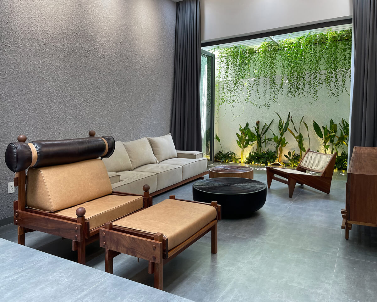 Mọi không gian trong nhà đều được thông gió và chiếu sáng tự nhiên nhờ khai thác ánh sáng và gió từ vị trí mặt tiền, khu vườn nhỏ phía sau nhà và giếng trời ở giữa.